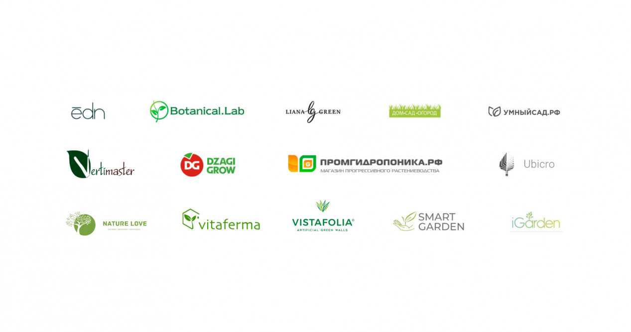 1. Рынок гидропоники инновационный и нишевый, порог входа высокий из-за сложности технологий. Компаний на рынке немного, конкуренция высокая. Акцент у конкурентов сделан на зеленых цветах и растительности, но заметили, что чаще всего логотипы перегружены большим количеством элементов.