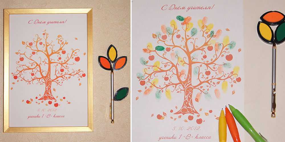 Групповое фото всего класса в виде дружеского шаржа или фотоколлажа станет хорошей памятью для педагога. С оборота каждый ученик сможет оставить подпись-поздравление с пожеланиями и теплыми словами.
