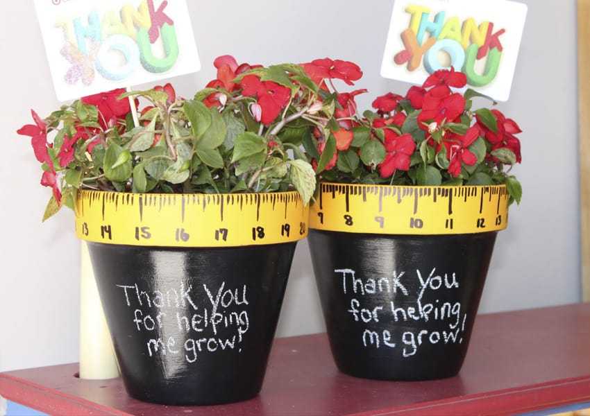 Комнатные растения в школьном кабинете — вещь незаменимая. Они очищают и обновляют воздух в душной аудитории. Выбери красивое растение и помести в оригинальный горшок, который можно украсить своими руками. Отличная идея — подпись: «Спасибо, что помогаете мне расти». Звучит двусмысленно, как о цветке, так и о ребенке. Приятная игра слов, в которой дети — цветы жизни, а учитель доволен трогательными словами.