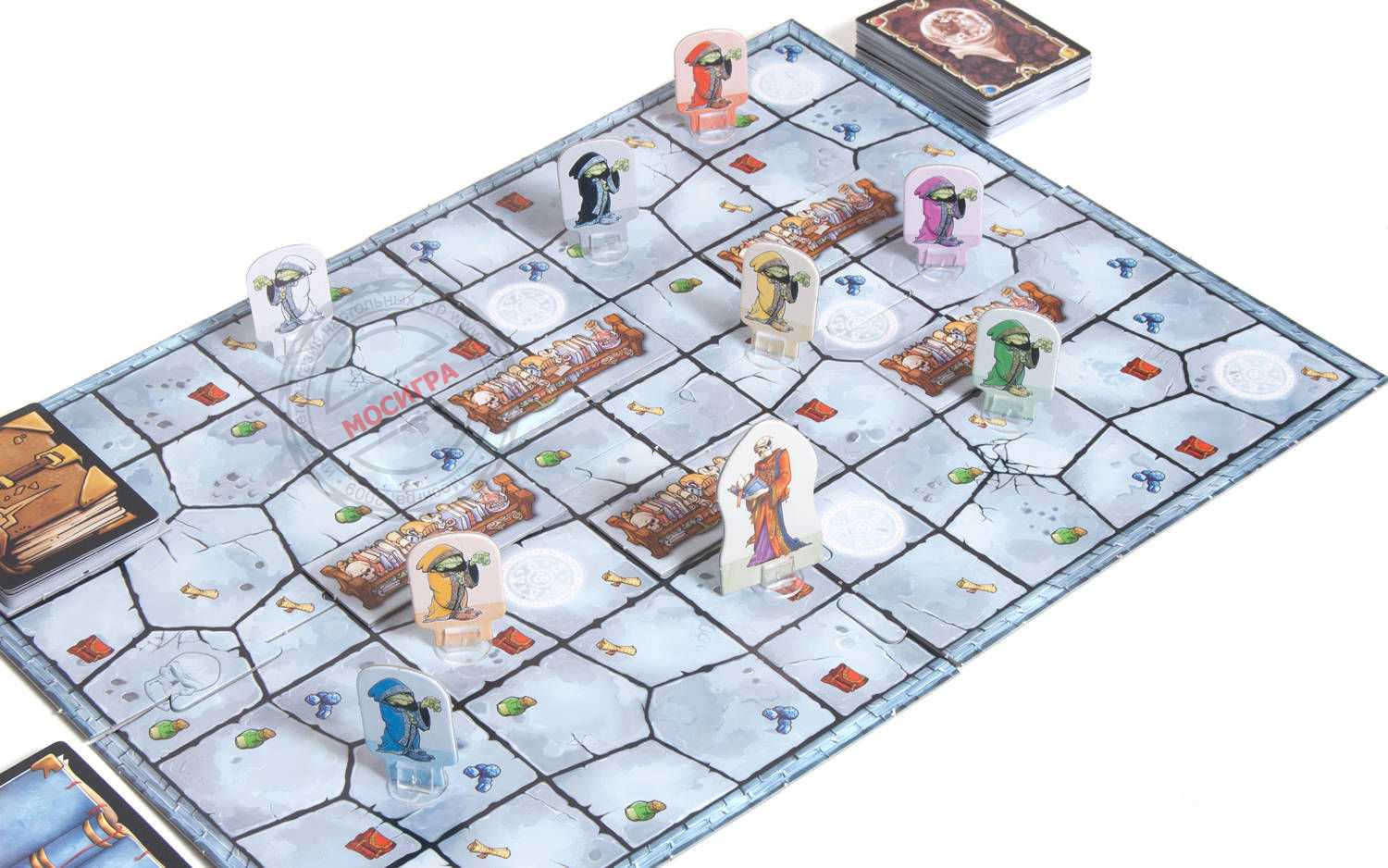Средняя цена В игре есть карта — библиотека Ригора Мортиса вместе с ним, по которой ходят гоблины — его слуги. Вы играете, в основном, за гоблинов, которые пытаются стащить книги заклинаний с его стола. Каждый ход игрок выбирает среди своих 3 карт передвижений, куда он может походить. Карты могут быть для перемещения гоблина, либо для перемещения Ригора. За один ход разыгрывается одна карта. Цель — добраться до книги, но не встретитсья с Ригором. Если произошла встреча сРигором, то игрок, чей гоблин попался, подвергается испепеляющему взгляду — он тянет специальную карту, где описано, что он должен делать до конца игры. Это или зажать карту между предплечьями или говорить сквозь зубы или стоять на одной ноге или сжать кулаки и не разжимать и так далее. Проигрывает тот, кто первым наберет 4 проклятия, выигрывает тот, у кого их меньше всего, а при равном количестве с другим, определяется по унесенным книгам. Книги могут избавить вас от полученных проклятий.