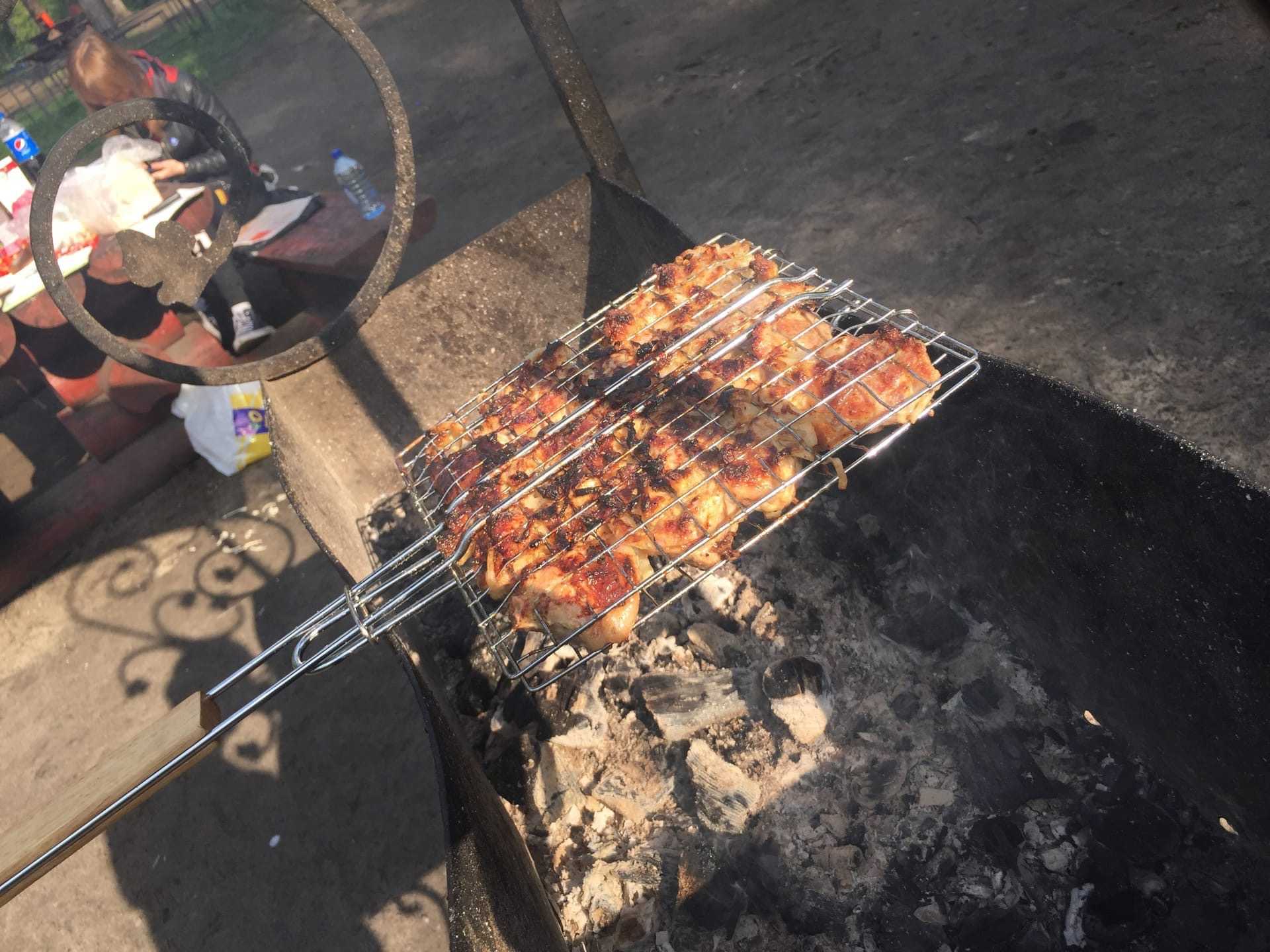 Спички мы взяли туристические (рублей 50 стоят), купили в ленте решётку за 229 рублей. Решили взять решётку, потому что я много раз резала себе руки шампурами и протыкала. Несильно, но всё же, неприятно. Салфетки, одноразовые мешочки. Мешочки для продуктов я надевала на руку чтобы не замараться и накладывала мясо на решётку.