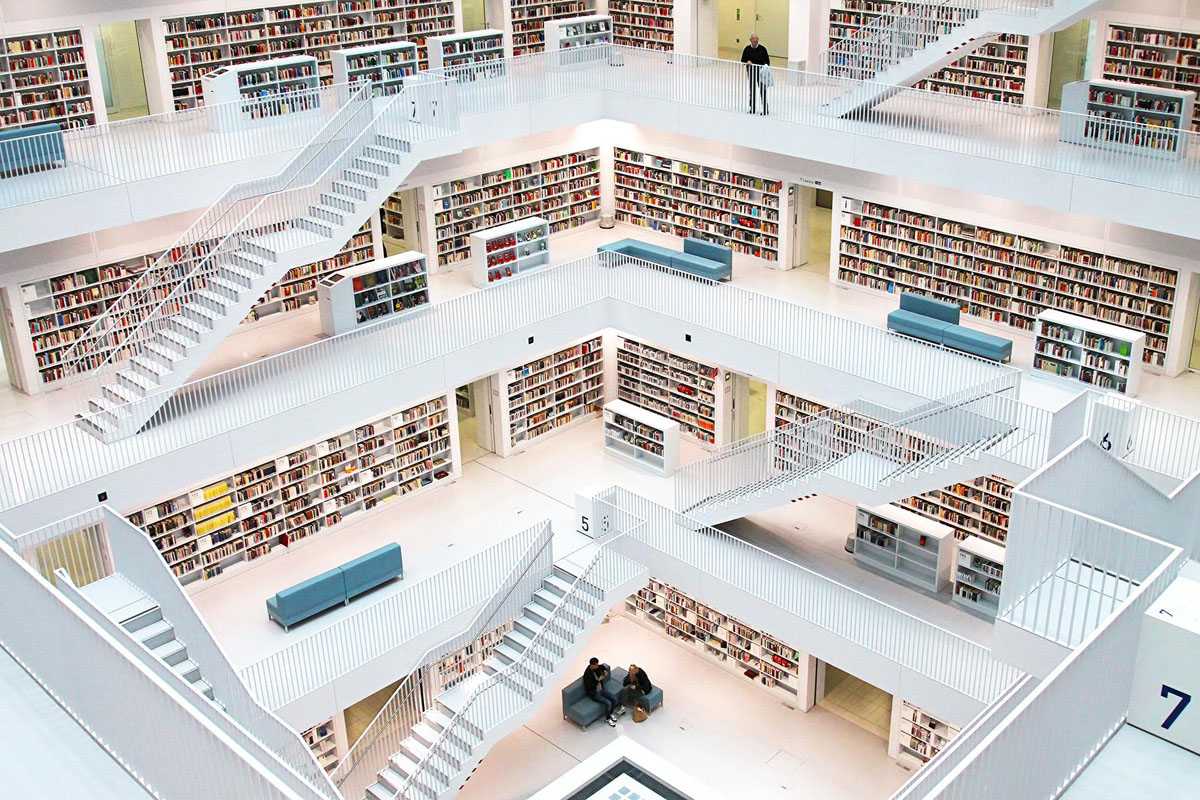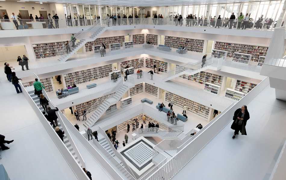 Одна из лучших библиотек Германии расположилась в Штутгарте. Внешняя архитектура здания, представляющего собой обычный куб, достаточно проста и вряд ли вызовет интерес, но вот его внутренний дизайн – это гимн современности и инновациям. Построенное в 2011 году книгохранилище располагается на 9 этажах, каждый из которых посвящен отдельной тематике, например, искусству или детской литературе.