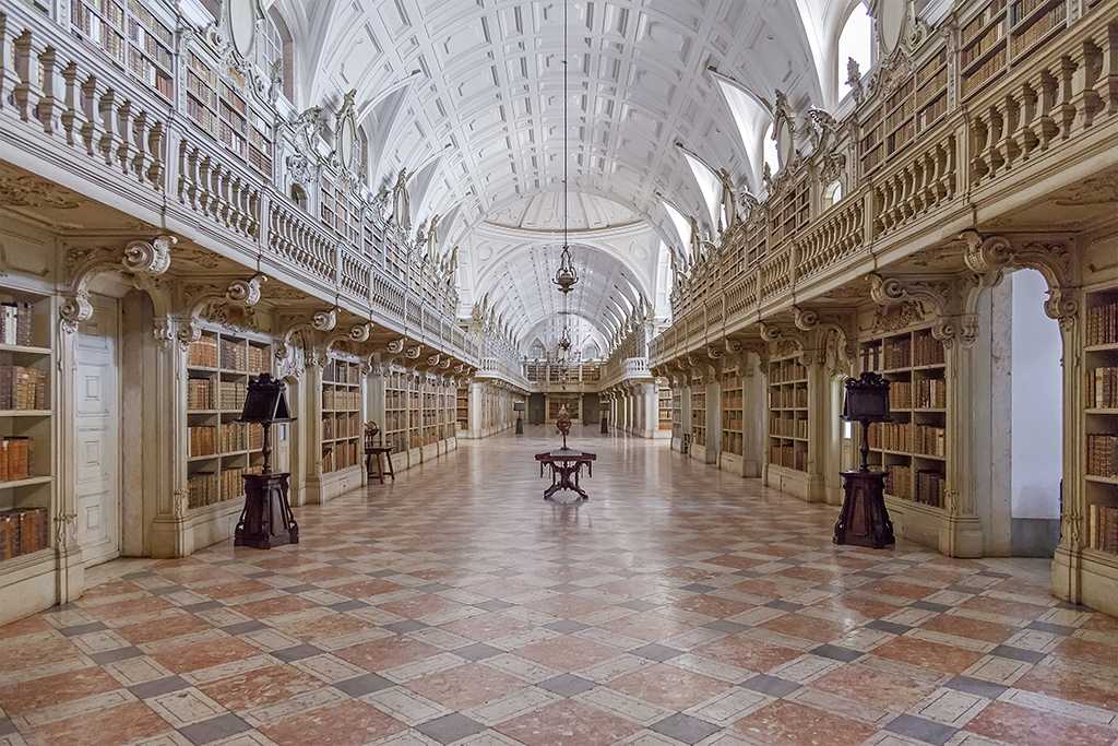 В огромном дворцовом комплексе Мафра находятся базилика, дворцовые покои, монастырь и библиотека с высокими белыми потолками, полом и полками из белого, розового и серого мрамора. Во всем этом великолепии хранится более 36 000 книг.