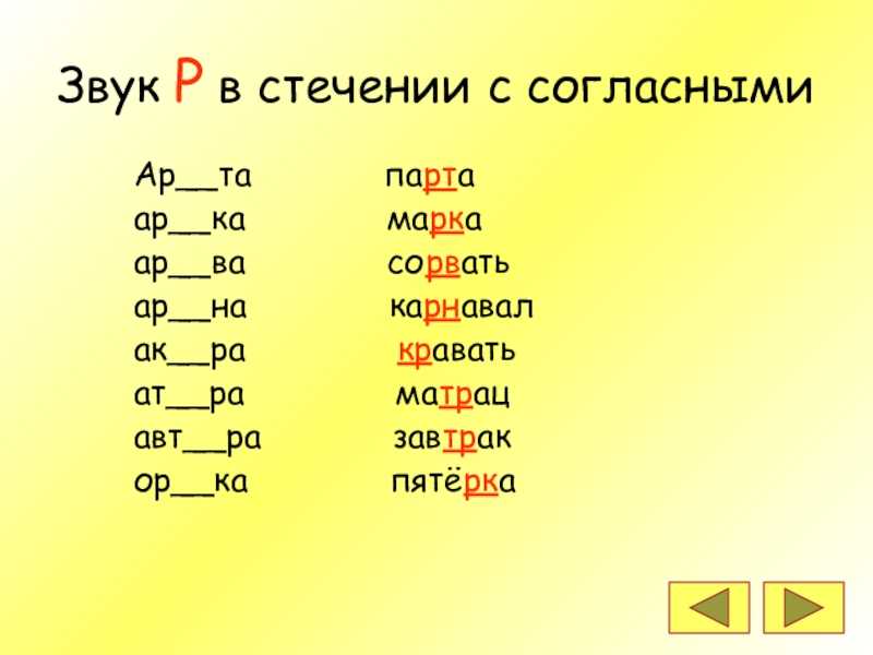 Автоматизация звука [Р] в словах. Место звука [Р] в начале, середине и конце слова