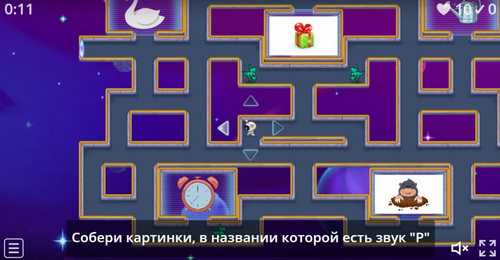 — Собери в лабиринте картинки, в названии которых есть звук . Называй то, что ты берёшь.