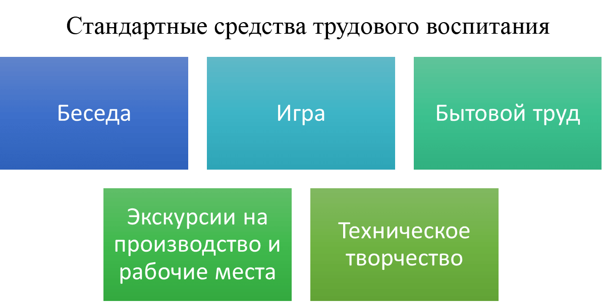 К средствам воспитания относят сравнительно независимые источники формирования личности: виды воспитывающей и развивающей деятельности (учение, труд, игра, спорт),