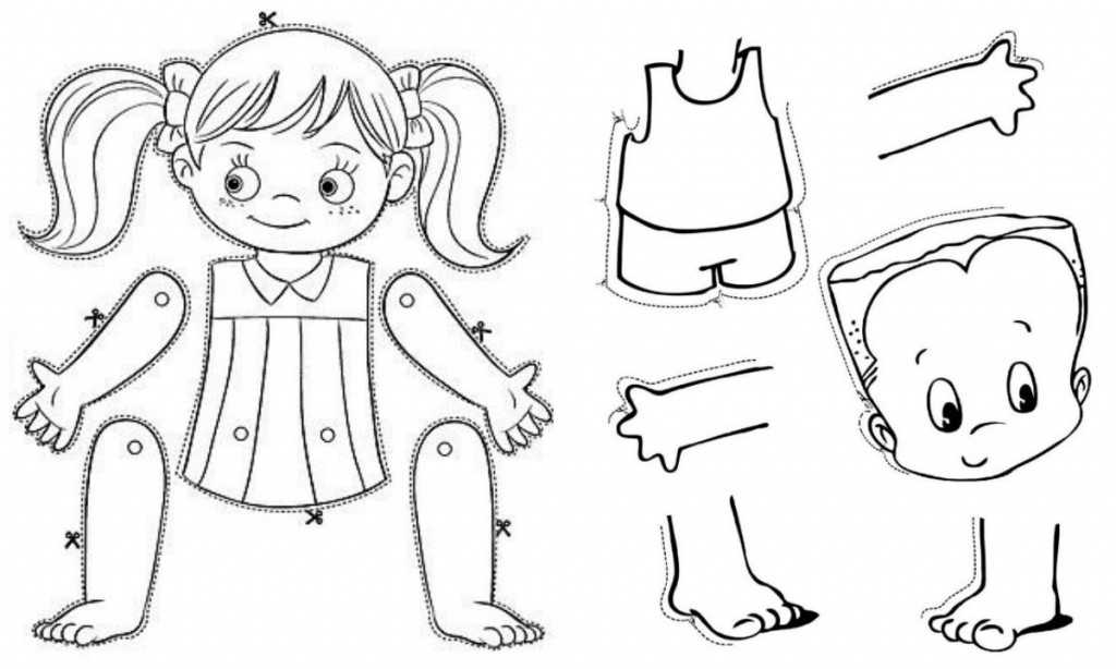 Вырезки. Можно распечатывать и вырезать ножницами изображения частей тела. Задача ребенка сложить их в нужном порядке. Так делают в играх для смартфонов и прочих устройств. Если картинка контурная, то ее можно раскрасить.
