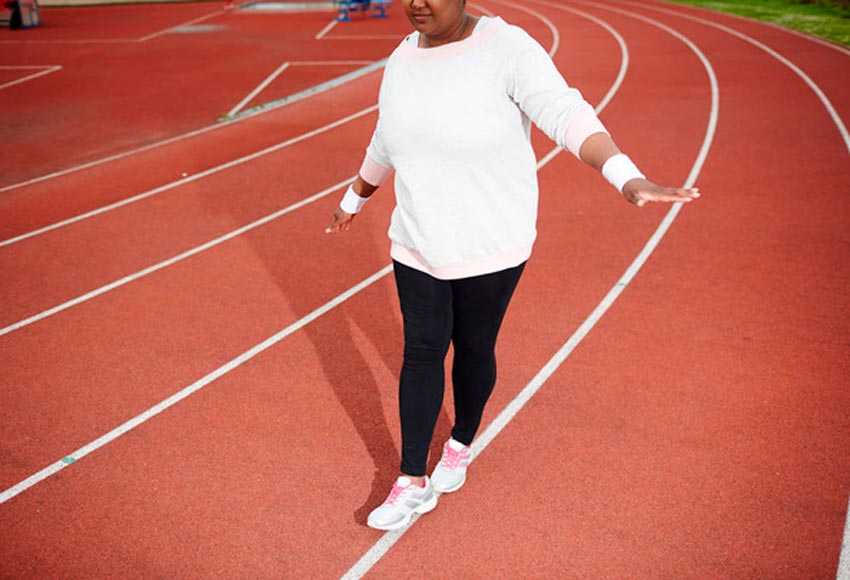 - Встаньте ровно, пятки вместе, носки врозь, ладони на талии. Закройте глаза и просто стойте не менее 20 секунд.