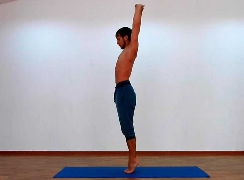 Повторить 3 цикла и перейти к другой ноге. В конце упражнения советуется прогнуться назад.