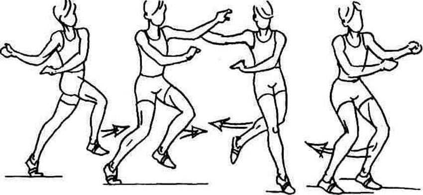 - На приподнятых носках наклонить корпус тела влево. Сделать 8-10 резких движений. Потом проделать упражнение в другую сторону.