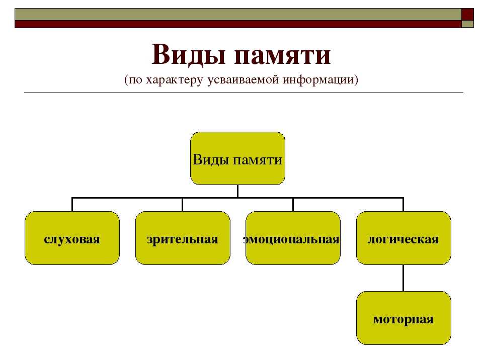 — рассмотреть основные процессы памяти, определяемые в современных условиях, и охарактеризовать основные её виды;