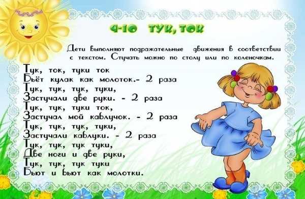 Задача педагога или родителя помогать крохе правильно произносить слова, фразы, предложения, следя за музыкой и движениями.