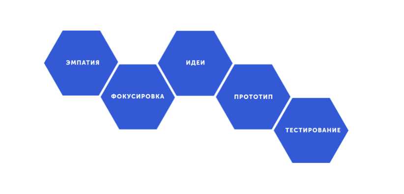 Алгоритм дизайн-мышления состоит из пяти этапов: