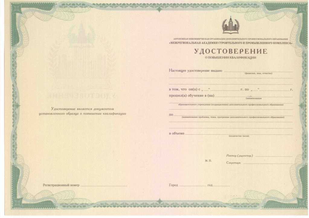 Образец удостоверения о повышении квалификации логопедов