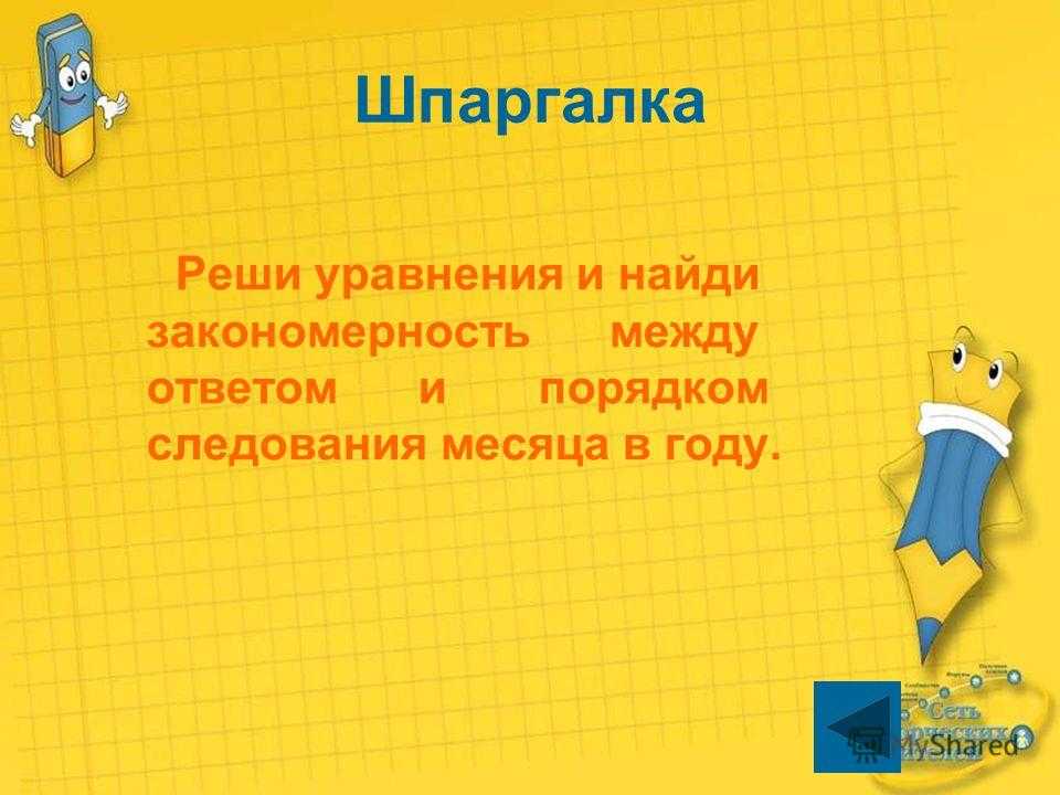 Шпаргалка Реши уравнения и найди закономерность между ответом и порядком следования месяца в году.