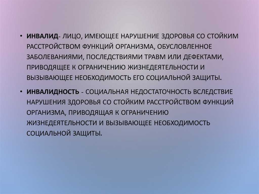 - наличие группы инвалидности;