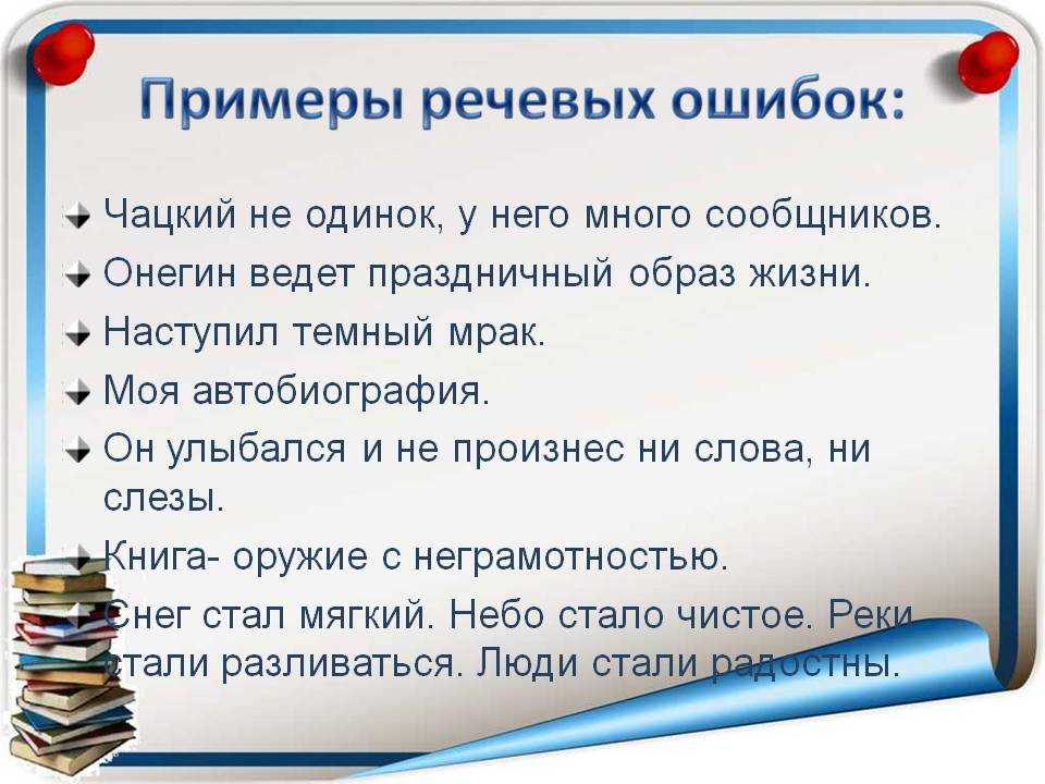 К ним относятся повторения слов, употребление их в неточном значении, использование просторечий. Например: