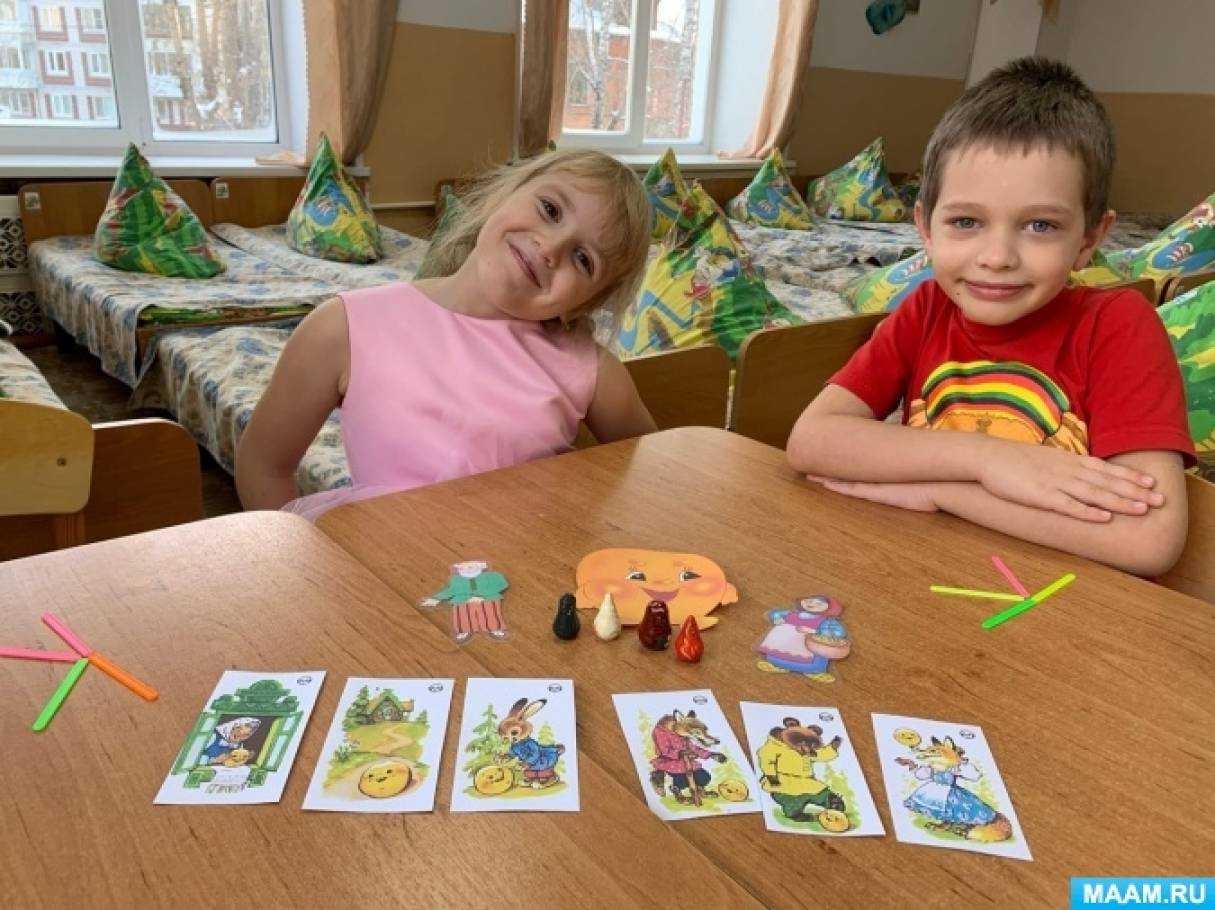 Оборудование: пальчиковый театр «Колобок», картинки с изображением колобка, бабки и деда, сюжетные картинки, счетные палочки, мячики су-джок.