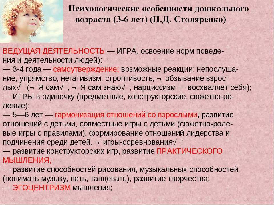 Ребёнок очень чутко воспринимает замечания и указания взрослого, что является благоприятным условием для воспитания, обучения и подготовки детей к школе. Сам дошкольник постепенно подходит к осознанию себя как субъекта взаимоотношений