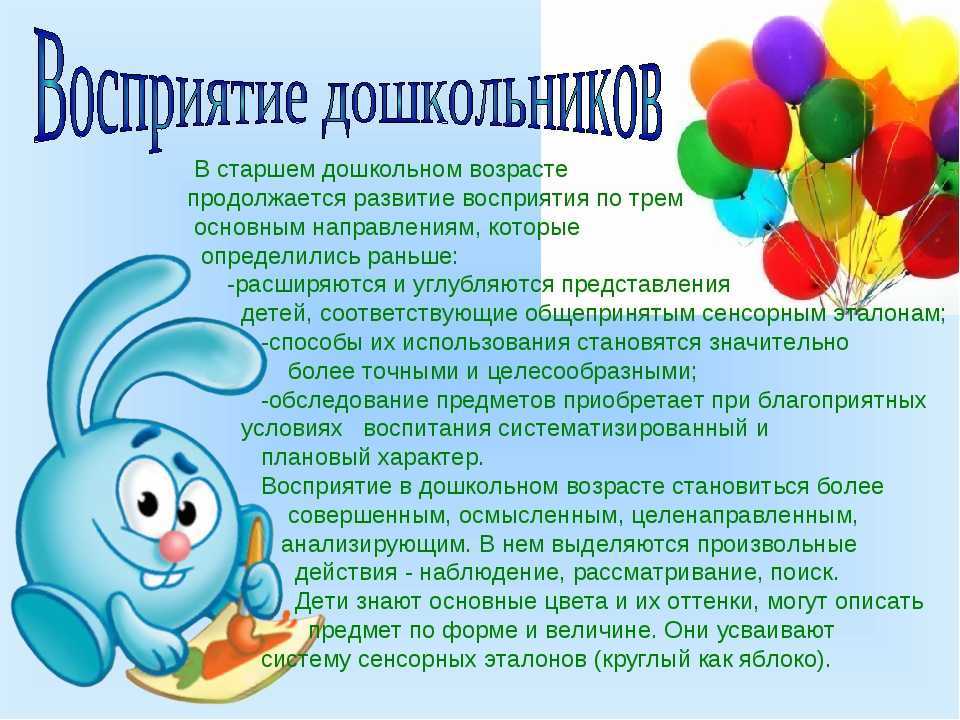 В старшем дошкольном возрасте продолжает развиваться наглядно-образное мышление и закладываются основы абстрактно-логического. Иногда малышу все еще требуется совершать действия с предметами, особенно с незнакомыми, чтобы понять их предназначение, но он все чаще оперирует мысленными образами.