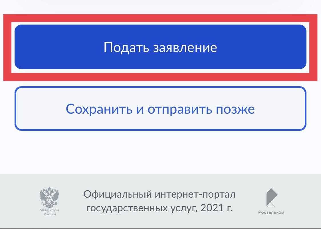 убедиться в правильности указанных данных и кликнуть по кнопке «Подать заявление».