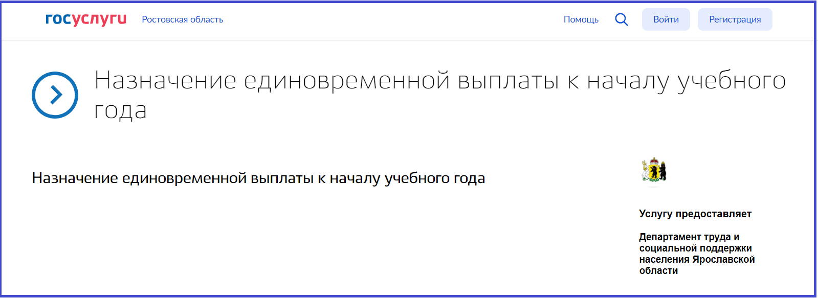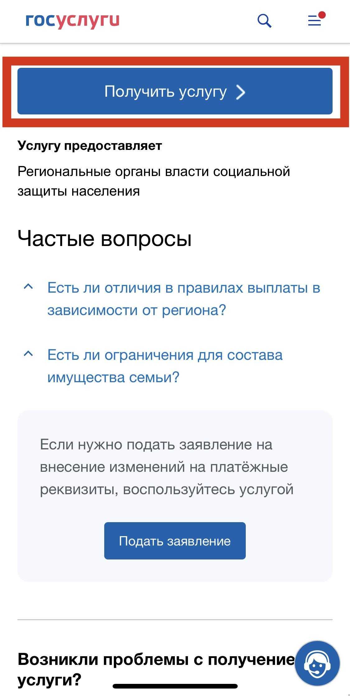 ознакомить с информацией о том, кто может получить единовременное пособие, какие документы потребуются для заполнения заявления и кликнуть по кнопке «Получить услугу»;