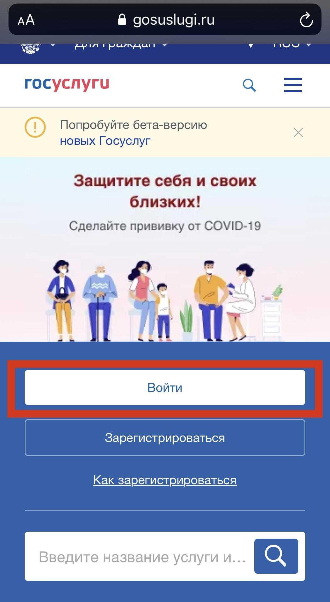 перейти на портал «Госуслуги» и кликнуть по кнопке «Войти»;