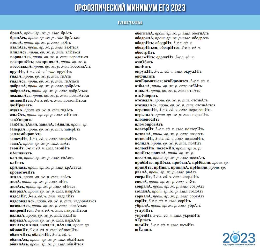 Федеральный институт педагогических измерений упростил задачу выпускникам и значительно сузил перечень слов, которые могут встретиться в разных вариантах КИМов. Загрузить на сове устройство орфоэпический минимум с изменениями, внесенными в этом году для ЕГЭ 2023, можно из архива документации по русскому языку, размещенного на портале fipi.ru.