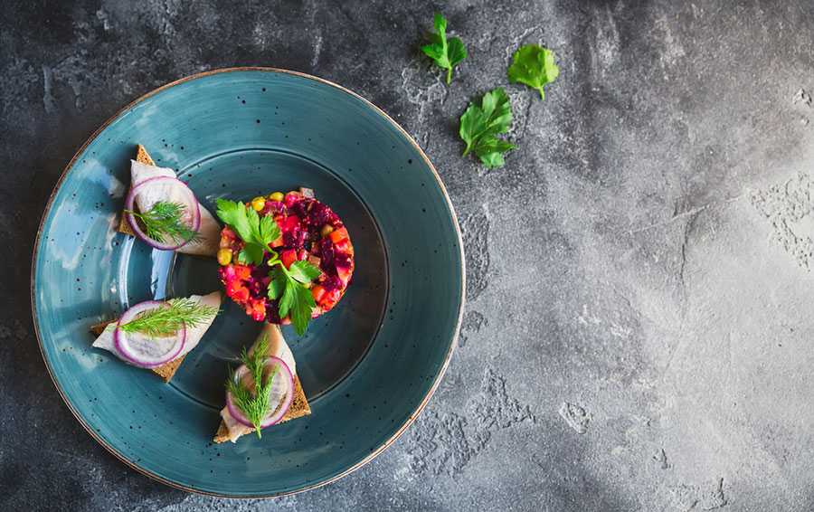 Почти ни одно новогоднее застолье не обходилось в России без двух салатов: оливье и селедки под шубой. Но если в существовании заморского аналога первого блюда можно поверить, то наличие в меню других стран селедки может немного удивить. Привычный рецепт, которые требует сельди слабого посола, лука, картофеля, свеклы и майонеза не так давно обрел вегетарианский вариант – «море под шубой». В Норвегии «морской салат» тоже пользуется большой популярностью, правда, вместо шапочки из вареной свеклы они используют маринованный салат из свеклы. И да, норвежцы подают свой сильдесалат тоже к Новому году.