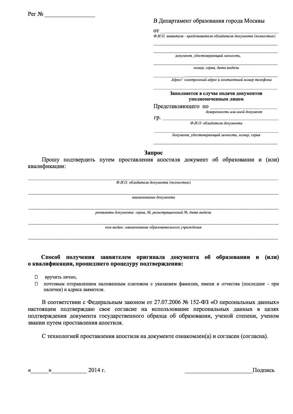 - Отнести оригиналы и заверенный перевод в Департамент образования Москвы или вашей области, где после уплаты пошлины, вы получите апостиль на диплом.