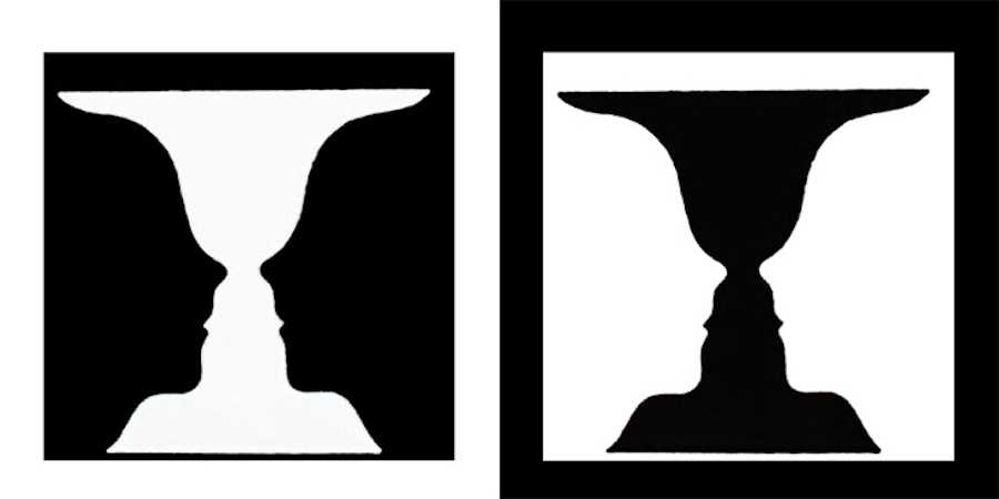 Из всей массы сигналов наше восприятие выделяет некий образ, а остальное становится его фоном. Наверняка вам встречалась «Ваза Рубина» — классический пример обращающихся фигур.