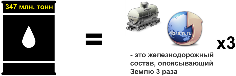 Например, всем известный Михаил Ходорковский, комментируя обвинительный приговор суда, в котором говорилось, что он украл 347 млн. тонн нефти, сравнил это количество топлива с объемом, который может поместиться в «железнодорожный состав, трижды огибающий землю по экватору». Обычному человеку сложно себе представить, сколько это 347 миллионов тонн нефти.