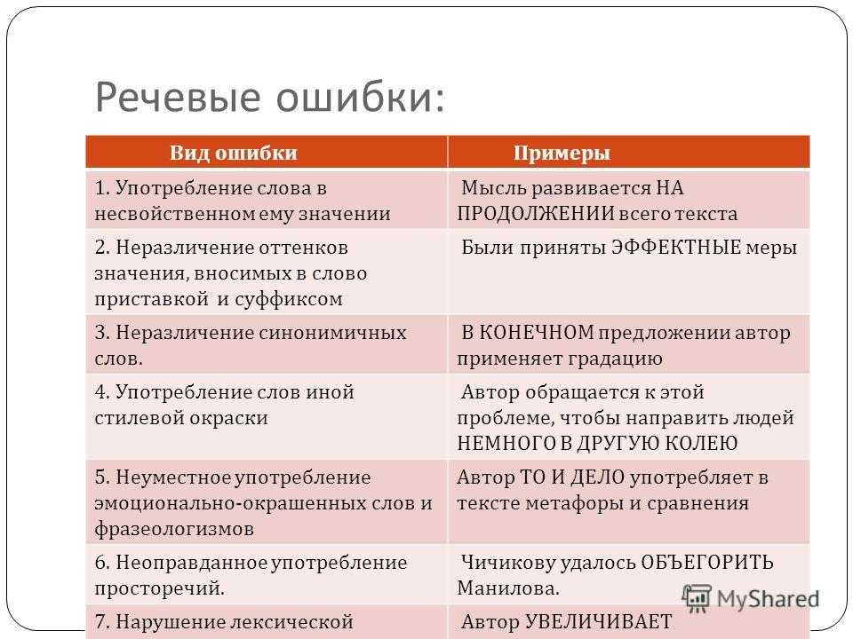 - Изучите разные виды речевых ошибок и постарайтесь от них избавиться.