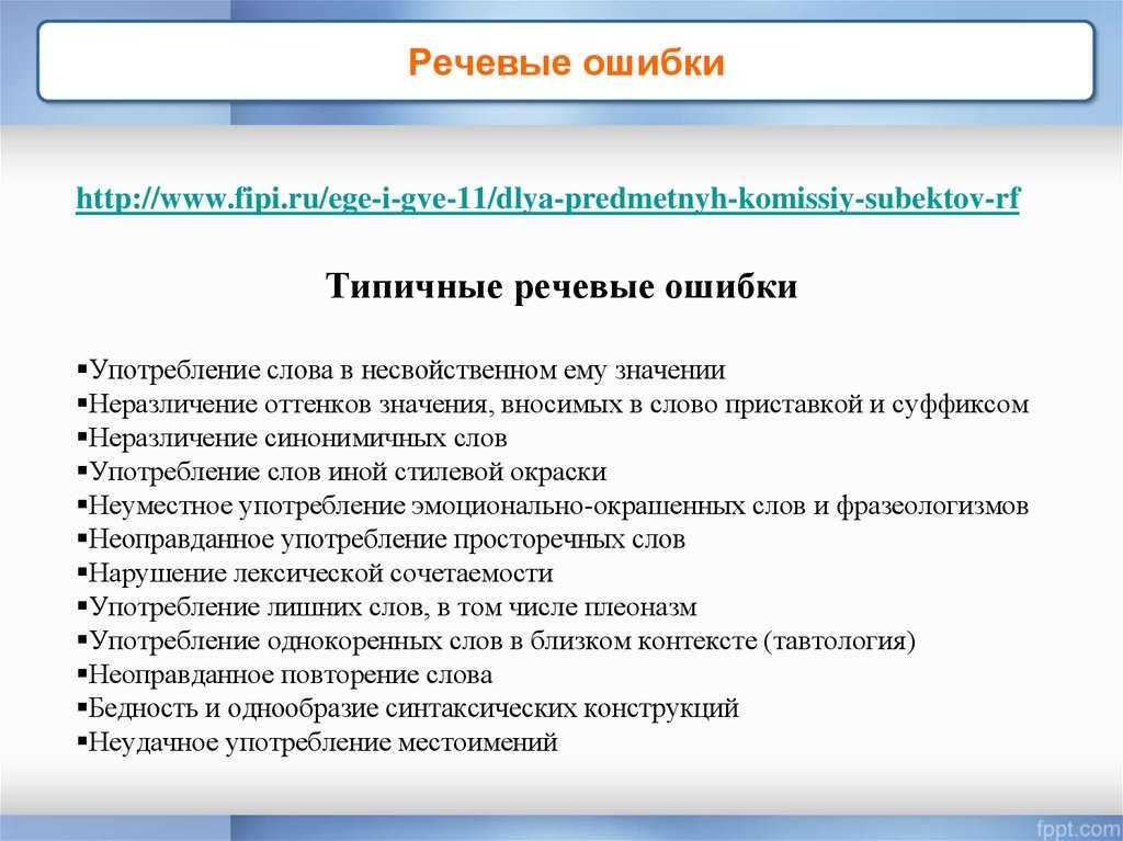 Типичные ошибки в русском языке. Самые распространенные ошибки в ЕГЭ по русскому языку: