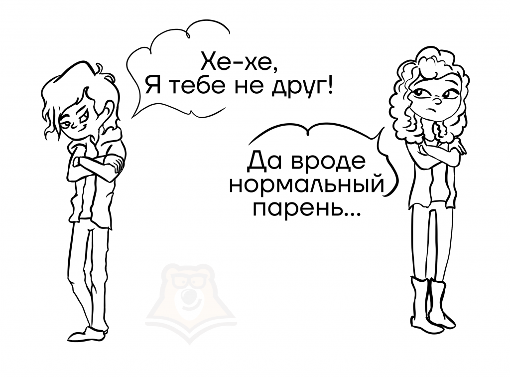 В первом мы делаем акцент на том, что человек может быть другом Свете, во втором же мы уточняем, был ли герой врагом Наташе или нет.