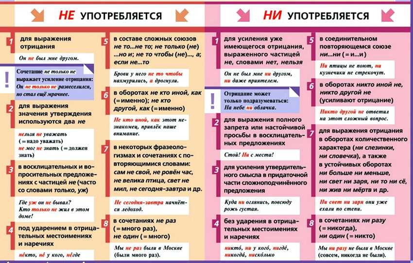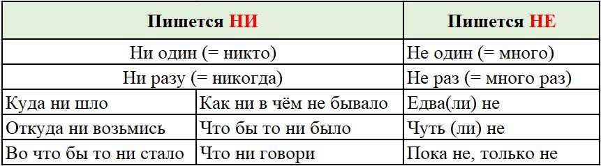 Также существует еще одно правило, которое позволяет уточнять когда пишется «не», а когда «ни» при встрече с определенными конструкциями. Вот оно: