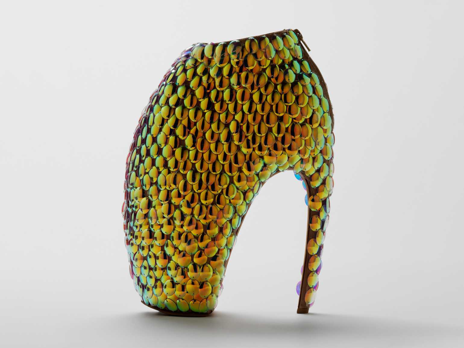 «Культовые туфли-броненосцы из последней прижизненной коллекции Ли Александра Маккуина — были выпущены для показа Plato’s Atlantis. В широкую продажу они никогда не поступали. Оригинальных Armadillo в мире немногим больше двух десятков: 21 пара была сделана для шоу и ещё несколько для подруг Ли — Леди Гаги, Дафны Гиннесс и ещё парочки счастливиц.