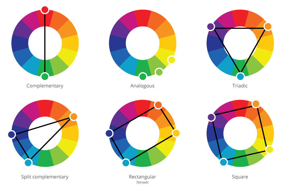 Распространенным вариантом раздельно-комплементарной схемы является аналогово-комплементарная. Их различие в том, что в раздельно-комплементарной используется три цвета, а в аналогово-комплементарной четыре. В этом случае используются оба цвета из пары дополнительных и два смежных.