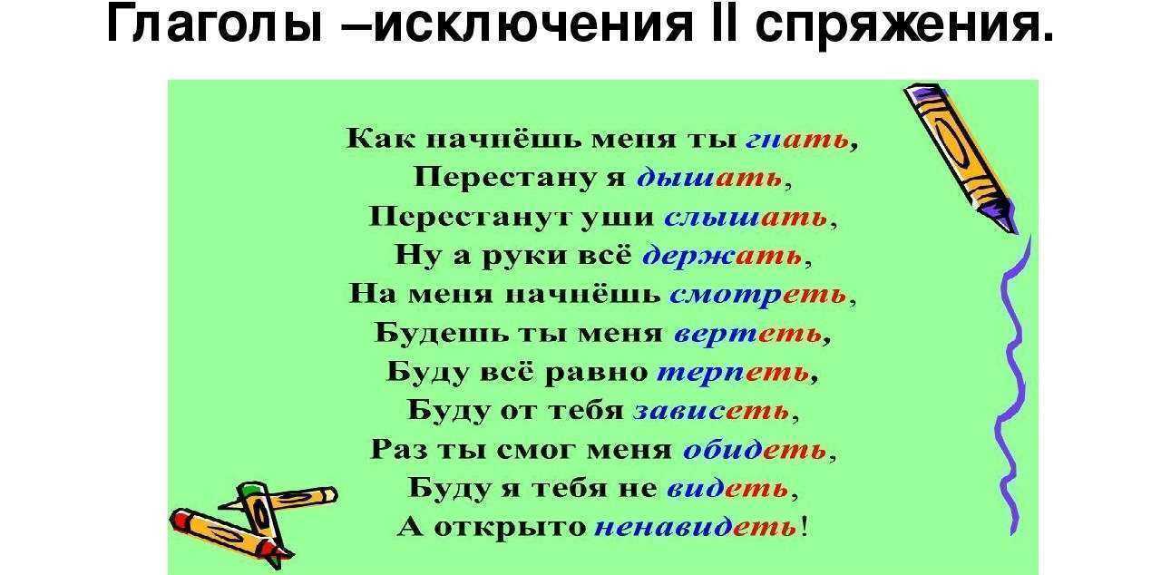 К числу наиболее действующих вариантов по запоминанию слов исключения – глаголов, можно отнести три основных методики: