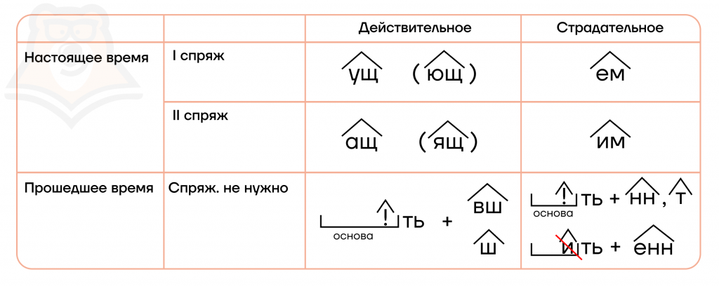 Кстати, от спряжения глагола зависят и гласные в суффиксах причастий настоящего времени. Если причастие образовано от глагола первого спряжения