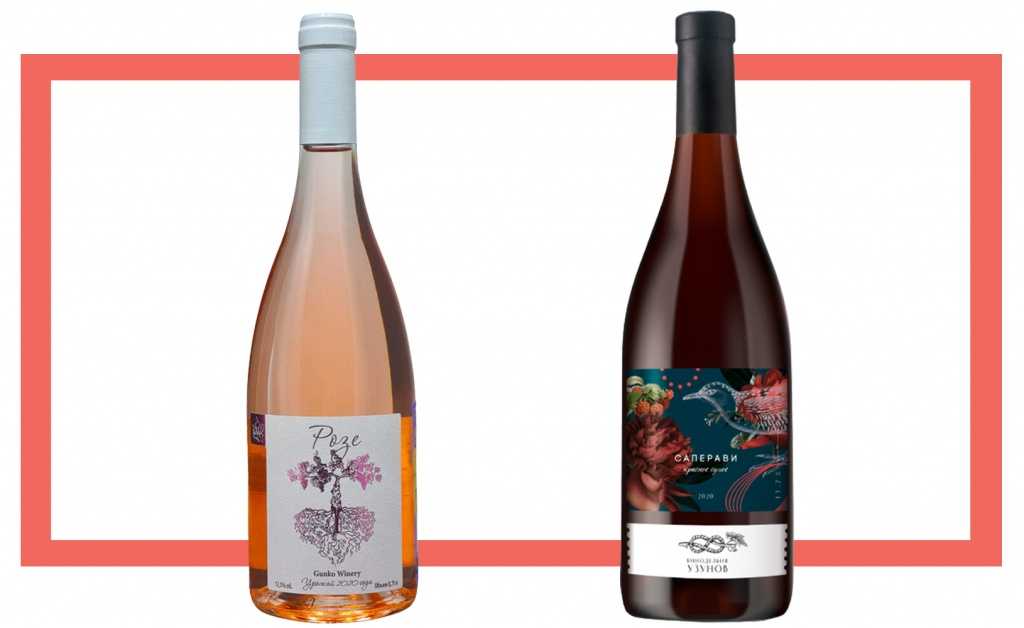 Слева направо: Гунько Розовое сухое 2020; Узунов Финт Красное сухое 2021